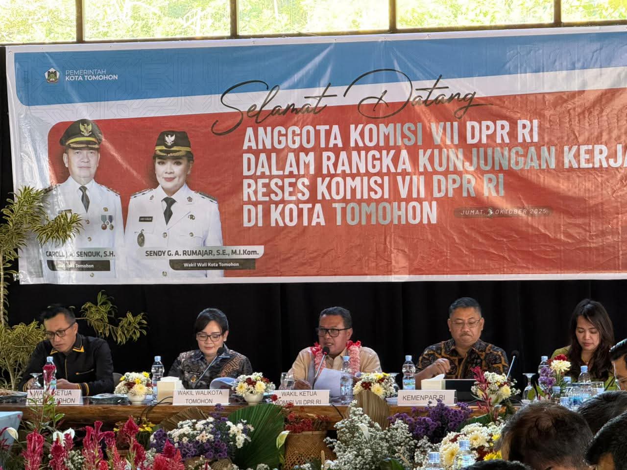 MAESANEWS, TOMOHON – Wakil Walikota Tomohon, Sendy Rumajar, bersama dengan pimpinan dan anggota Komisi II DPRD Kota Tomohon, menghadiri kunjungan kerja reses Komisi VII DPR RI yang berlangsung di Kota Tomohon pada hari Jumat, 3 Oktober 2025. Kunjungan ini menjadi momentum penting dalam menjalin sinergi antara pemerintah daerah dan pusat dalam upaya pembangunan dan peningkatan kesejahteraan masyarakat Tomohon.
