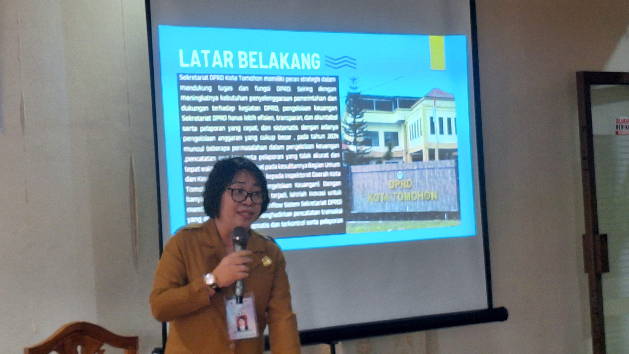 Diakhir pemaparan Wiesje menjelasakan bahwa, dengan latar belakang tersebut perancangan Digitalisasi Pertanggungjawaban Uang Persediaan (UP) Sekretariat DPRD Kota Tomohon menjadi langkah penting untuk memperkuat manajemen keuangan Sekretariat DPRD Kota Tomohon, mengurangi hambatan administratif, serta memastikan bahwa seluruh proses pelaporan keuangan dapat berjalan secara efektif, transparan, dan dapat dipertanggungjawabkan sesuai aturan yang berlaku.