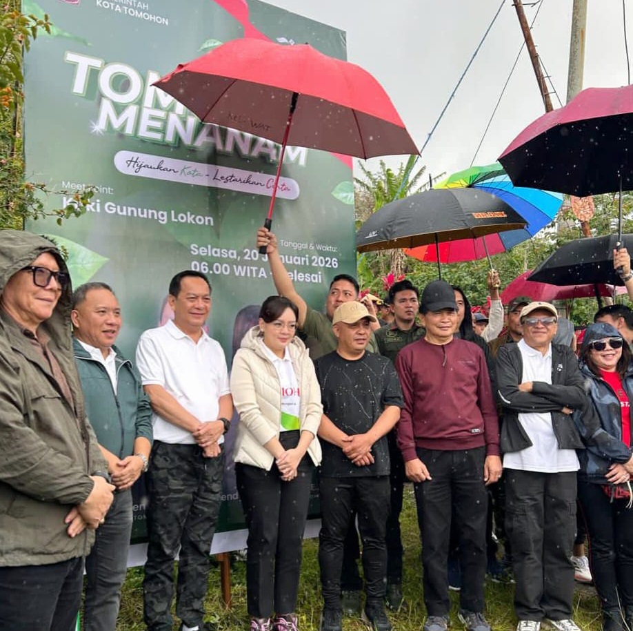 MAESANEWS, TOMOHON – Dalam rangka merayakan Hari Ulang Tahun (HUT) Kota Tomohon yang ke-23, Pemerintah Kota Tomohon melaksanakan aksi penanaman pohon di kawasan cagar alam kaki Gunung Lokon pada Selasa pagi (20/01/2026). Kegiatan ini diikuti oleh pimpinan dan anggota Dewan Perwakilan Rakyat Daerah (DPRD) Kota Tomohon sebagai bentuk kepedulian terhadap lingkungan hidup.