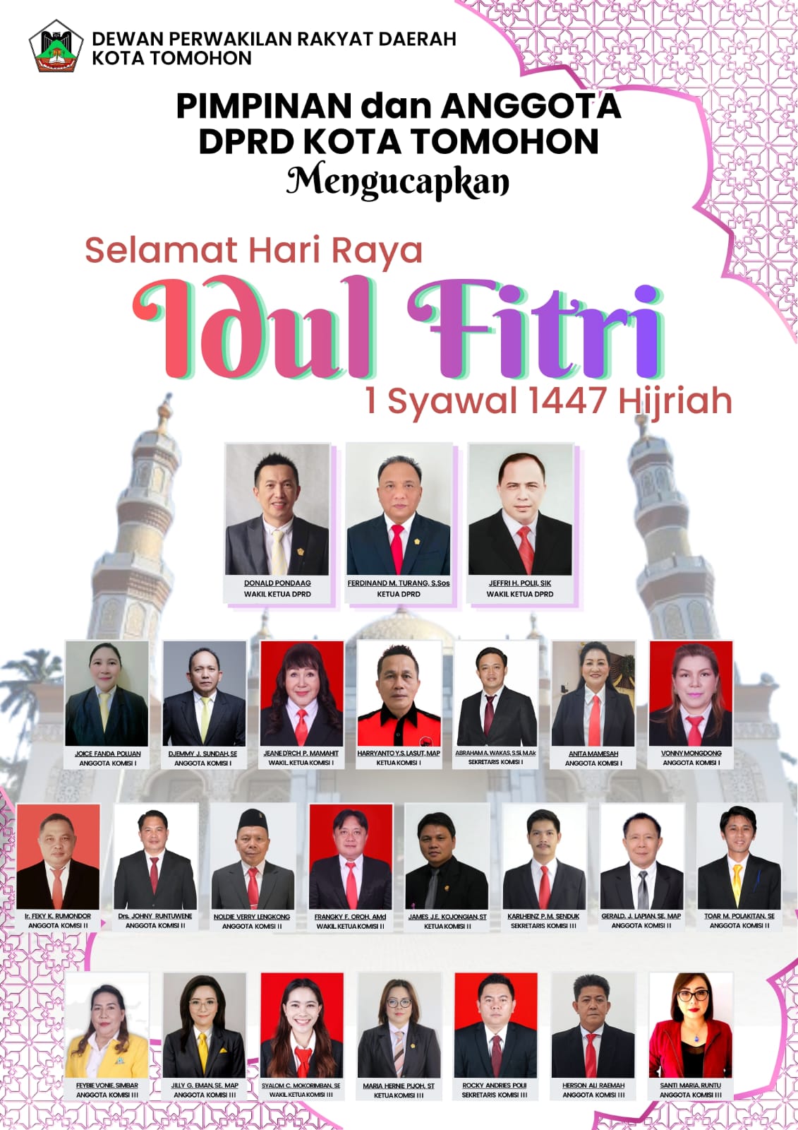 MAESANEWS, TOMOHON – DPRD Kota Tomohon menyampaikan ucapan Selamat Hari Raya Idul Fitri 1 Syawal 1447 Hijriah kepada seluruh masyarakat Kota Tomohon.